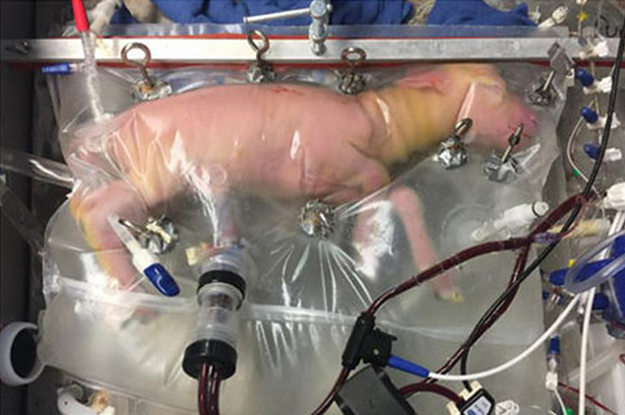The Guardian reports (4-25-17), “Neil Marlow, professor of neonatal medicine at University College London, said that the latest study would be viewed as a significant step towards this goal. “This is real tomorrow’s world stuff,” he said. “They appear to have got lambs through four weeks which is a pretty momentous achievement.”