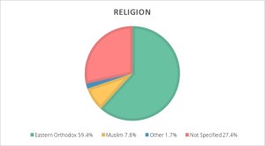 The CIA World Factbook has Bulgaria’s religions as: Eastern Orthodox 59.4%, Muslim 7.8%, other 1.7%, none 3.7%, unspecified 27.4% (2011 est.). The ARDA (pre-2015 data) puts their largest religious groups as: 77.9% Orthodox, 5.8% Sunni Muslim, not religious 3.6% and unknow 10%. And Pew-Templeton, Global Religious Futures, estimated of 2010: 82.1% Christians, 13.7% Muslims and 4.2% unaffiliated; and for 2020: 81% Christians, 14.2% Muslims and 4.7% unaffiliated.