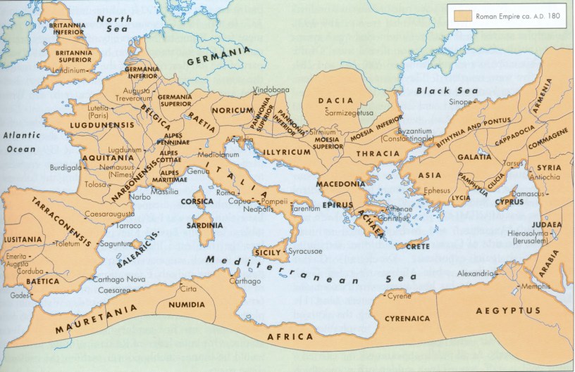 Featured map: Mediterranean (‘in between the lands’) Sea (Mare Internum) also called Mare Nostrum (‘our Sea’) by the Romans. The Iberian Peninsula was also called Hispania. Africa: some say named for Roman general Scipio Africanus who defeated Hannibal in the Second Punic War; others say from Egyptian ‘Afru-ika’ or Motherland. As to Germany (Gaul), many Caesars in their names had the name or title Germanicus; this Germania was popularized by Germanicus Julius Caesar (Nero Claudius Drusus). As to Europe; likely from Europa (Greek mythology – one of Zeus’ wives)