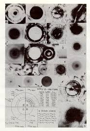 ‘…Autoradiography was the only technique that could show exactly where an alpha particle originated; hence it was the only technique which could determine whether the D halo centers were still radioactive. The autoradiographic experiments required the use of a special photographic emulsion capable of recording the passage of a single alpha particle. The first step was to split the mica specimen so that the D halo centers were either exposed on the surface or else very close to it. (The specimens chosen sometimes contained uranium halos and one or more of the A, B, or C halos as well.) Step two consisted of pouring a thin layer of this special emulsion over the exposed surface. Under these conditions, nearly half of all the alpha particles ejected from the various halo centers would pass up into the alpha-sensitive emulsion; there they would leave very short trails of ionized atoms. These short trails would remain invisible until the emulsion was developed; after development they appeared as short black tracks when viewed under the microscope. The emulsion-covered halo specimens were placed in a freezer to insure that the tiny trails didn’t fade away during the several-week or more storage time.