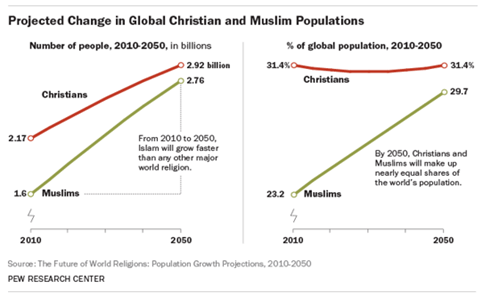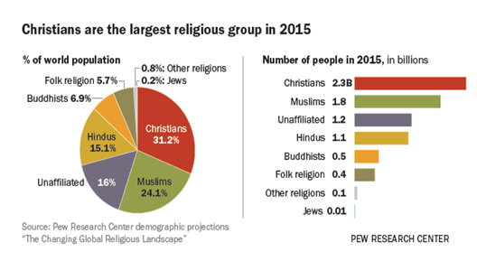 To say that the world 2015 population only had 16% of the people unaffiliated was both unrealistic and misleading. To assume that in 2050 there will be 5.7 billion Christians and Muslims, being over 61%, shows that the researchers may be professional, but they are neither true believers in the either the Holy Scriptures or the Koran, both of which show a coming anti-Christ. The researchers used such simple calculating methods, like those that assume evolution, and both do not take in account cataclysmic and mega-culture events.