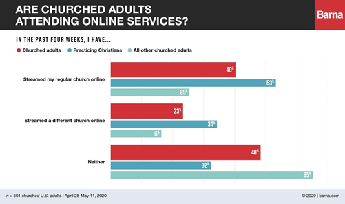 July 2020 Barna Research reported that one in three practicing Christians has stopped attending church. 53% say they have streamed their regular church online within the past four weeks. However, many, even about 1/3 have stop with any kind of attendance.