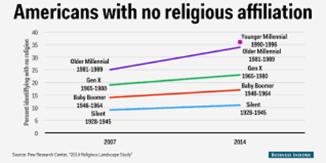 Generation by generation, America like many formerly religious nations are falling away.